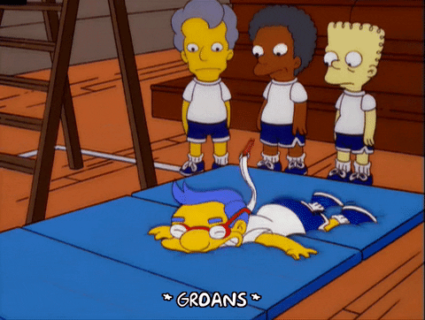 12. Wer im Sportunterricht dazu aufgefordert wurde, die großen blauen Matten zu holen, hat dafür eine halbe Ewigkeit gebraucht. Schieben… und drauf fallen lassen! Nur so kam man vorwärts.